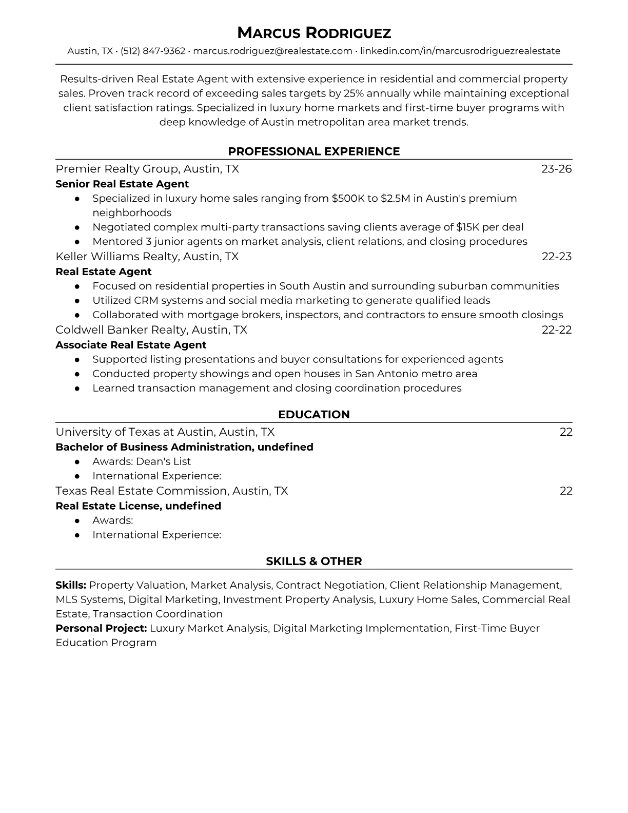 Real Estate Agent Resume Templates - Professional & ATS-Optimized