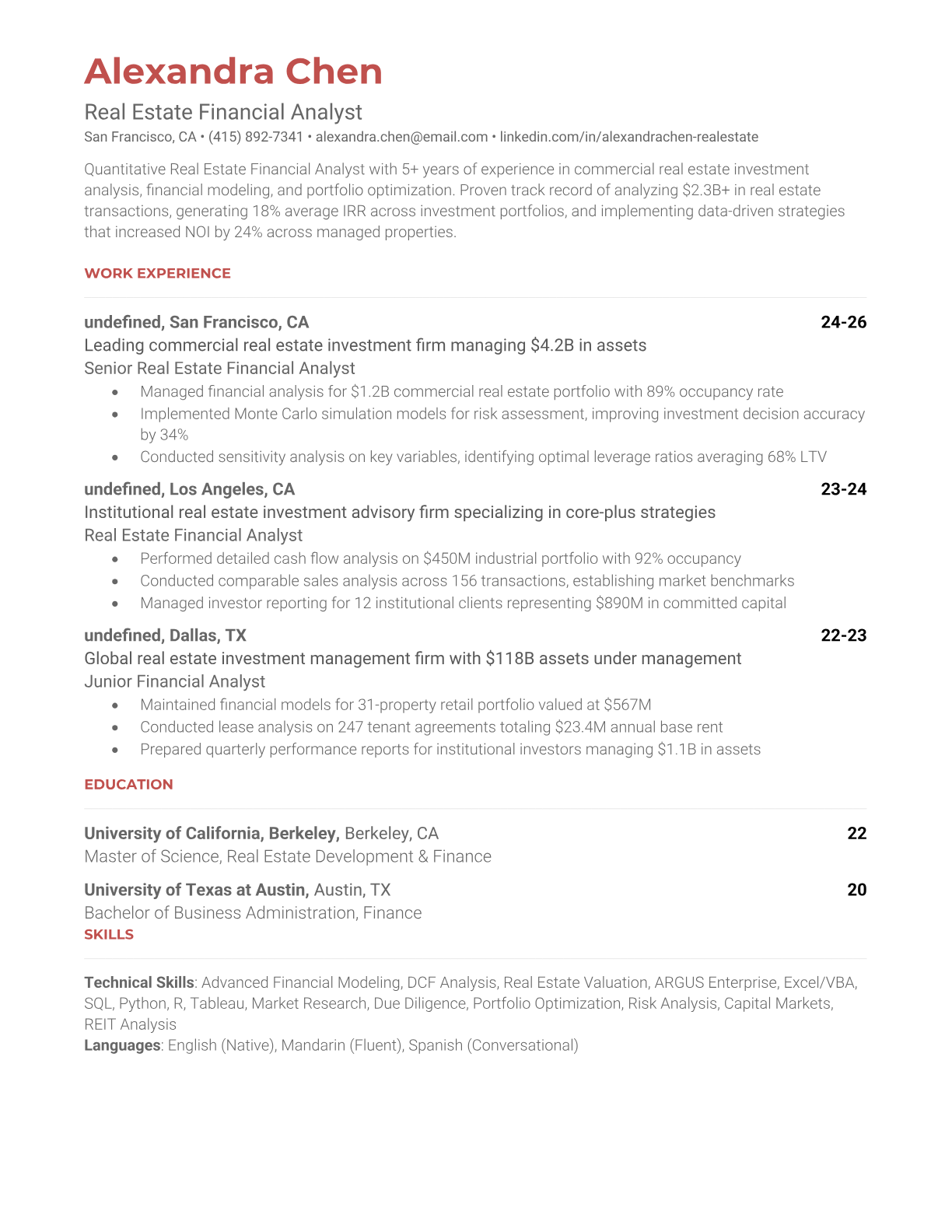 Real Estate Financial Analyst Resume Templates - ATS-Optimized