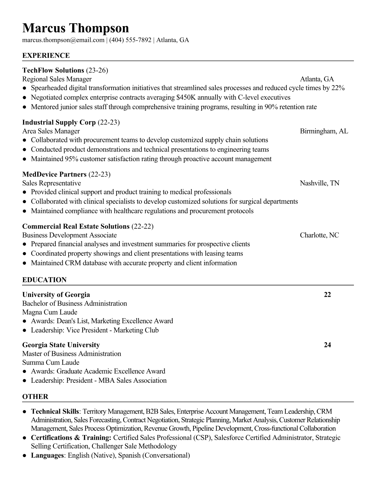 Regional Sales Manager Resume Templates - ATS-Optimized