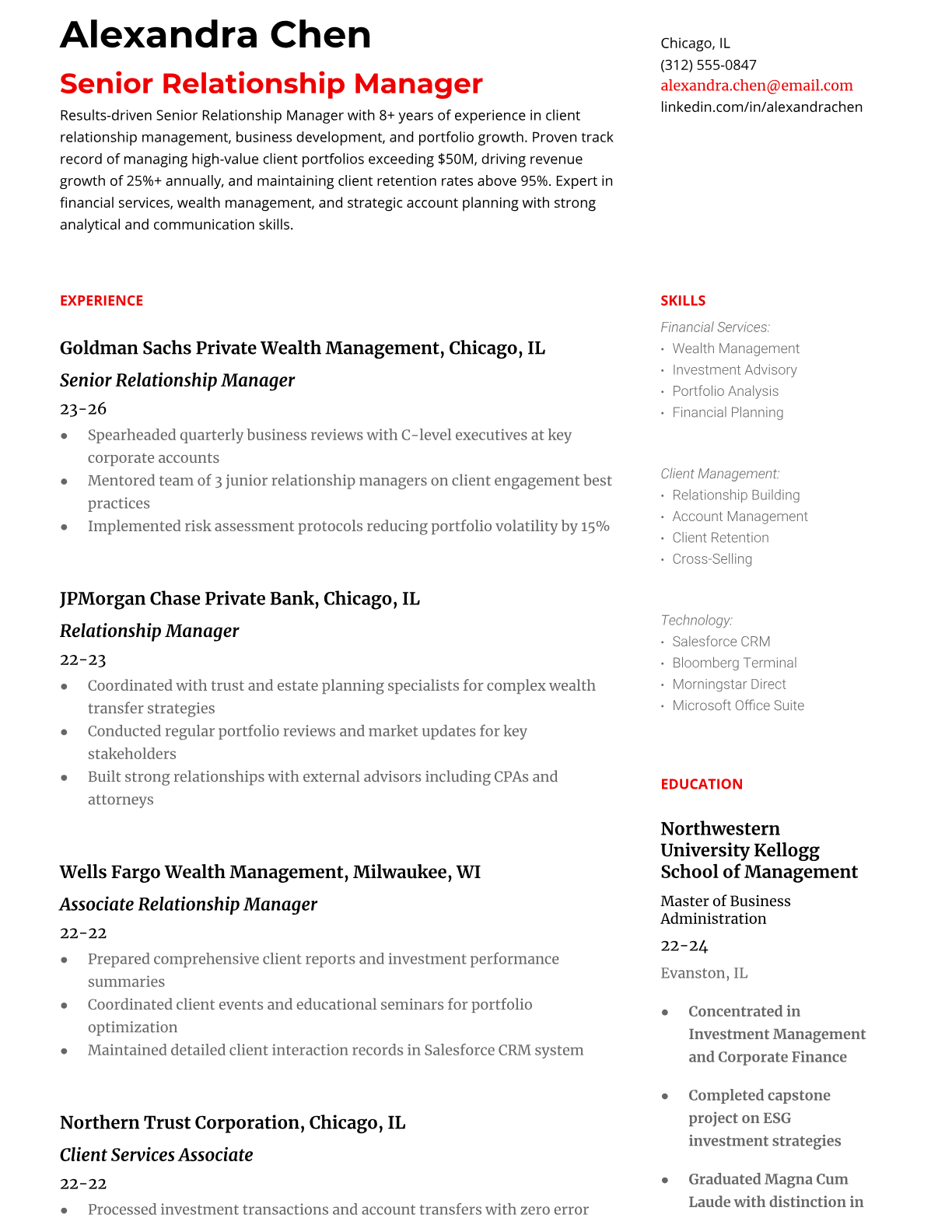 Professional relationship manager resume templates optimized for banking, financial services, and client management roles. ATS-friendly formats with proven success metrics.