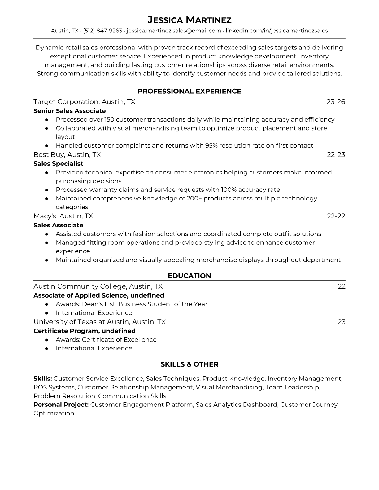 Sales Associate Resume Templates - Retail Salesperson Resume Builder