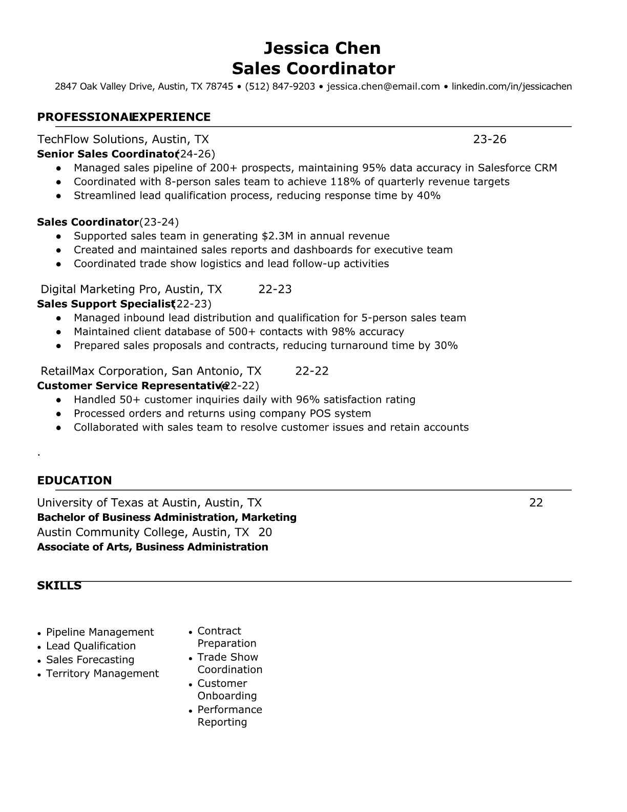 Sales Coordinator Resume Templates - ATS-Optimized Formats