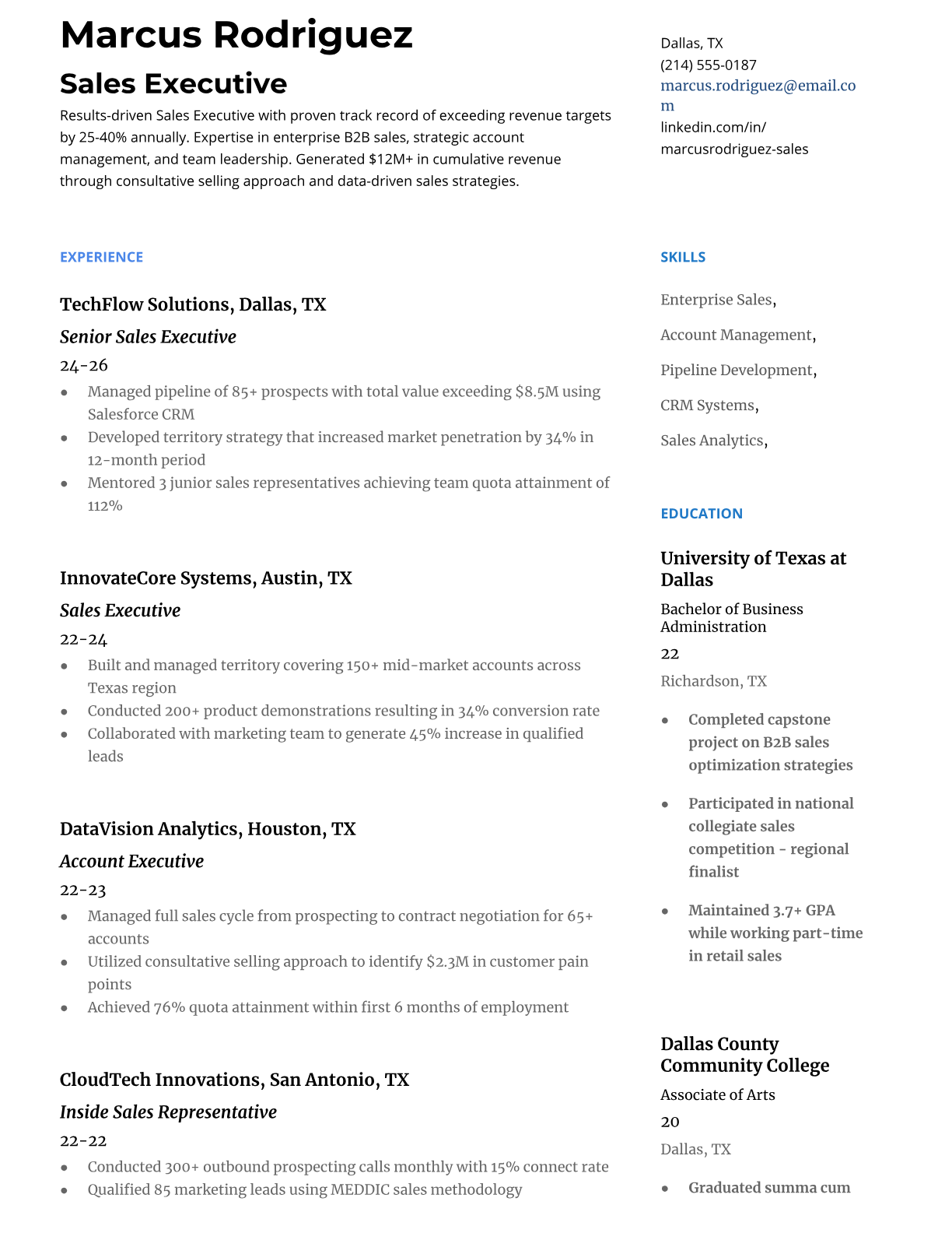 Sales Executive Resume Templates , ATS-Optimized for 2024