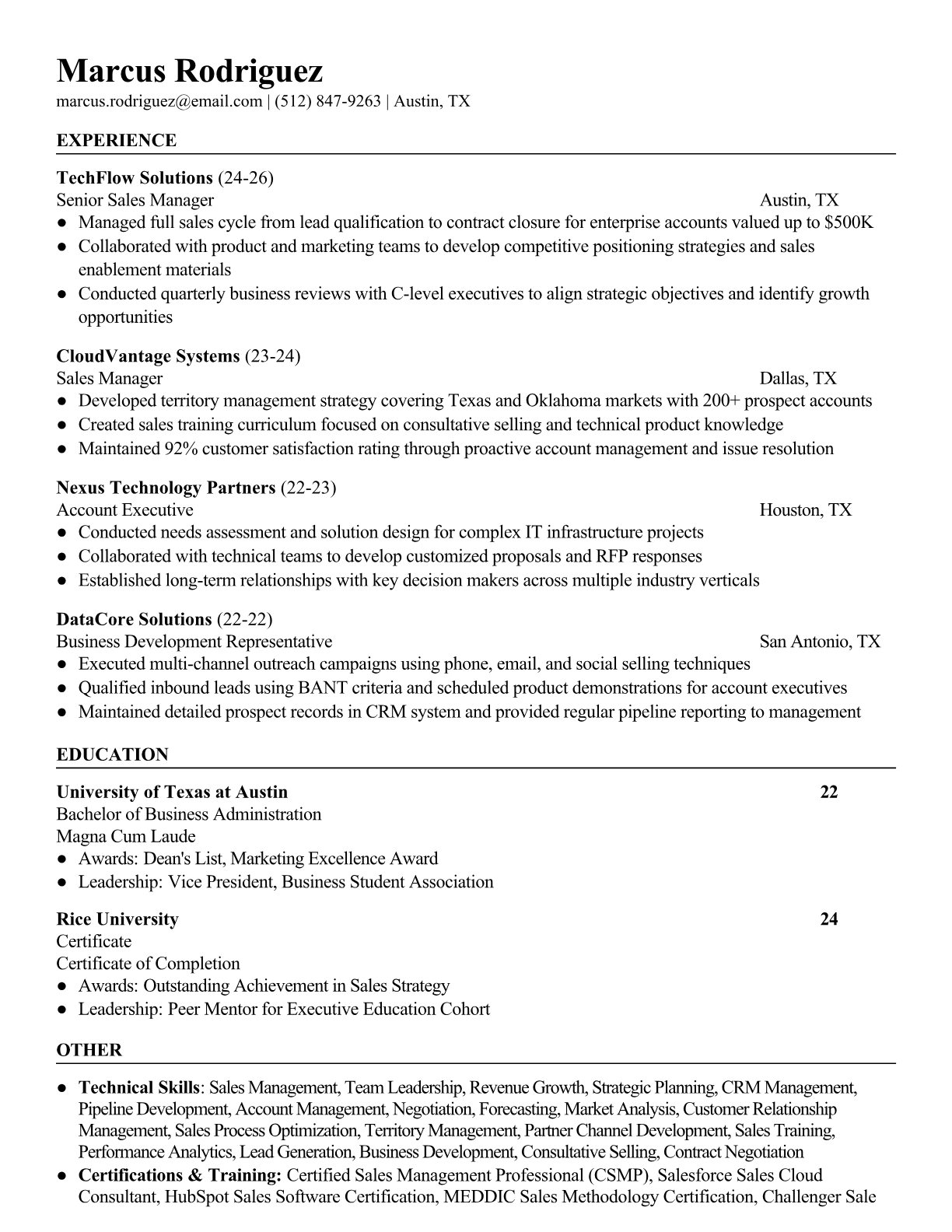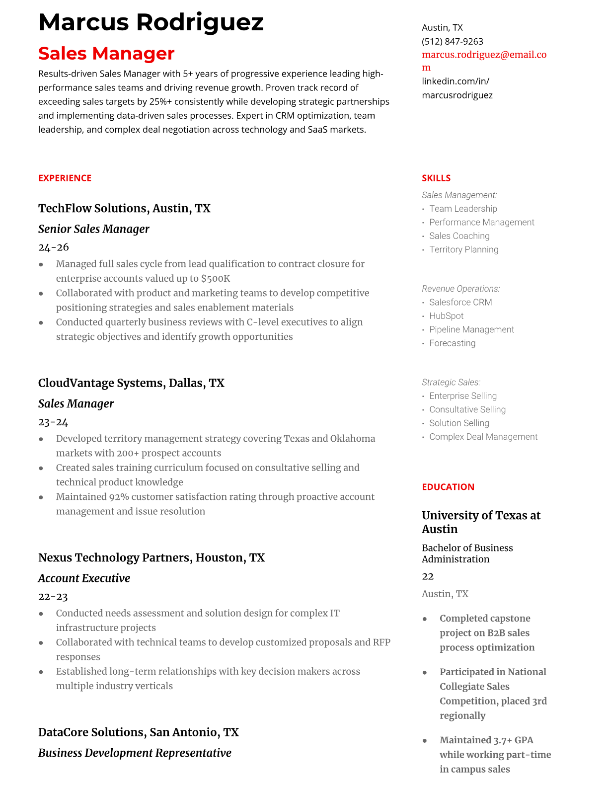 Sales Manager Resume Templates - ATS-Optimized for 2024