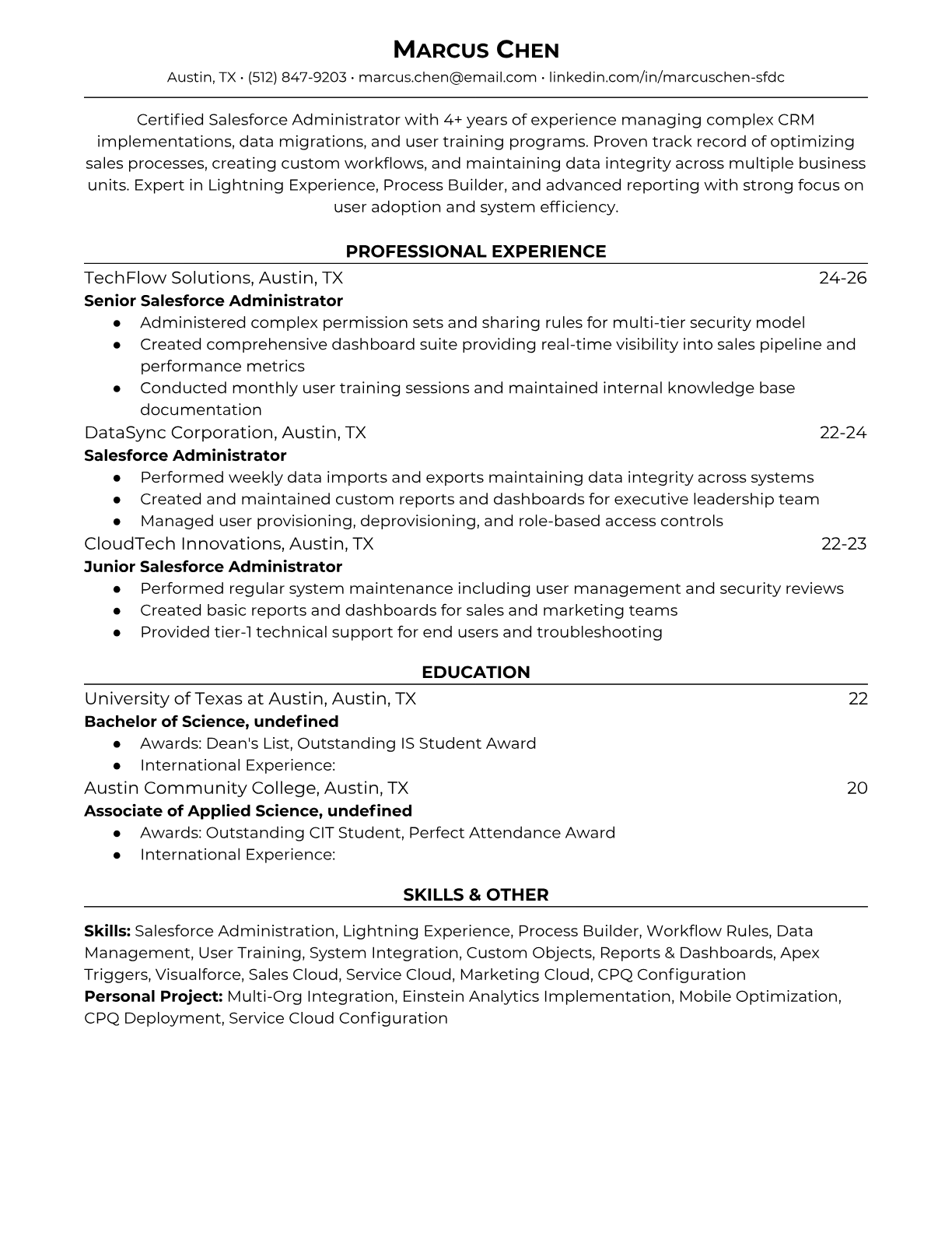 Salesforce Administrator Resume Templates - ATS-Optimized