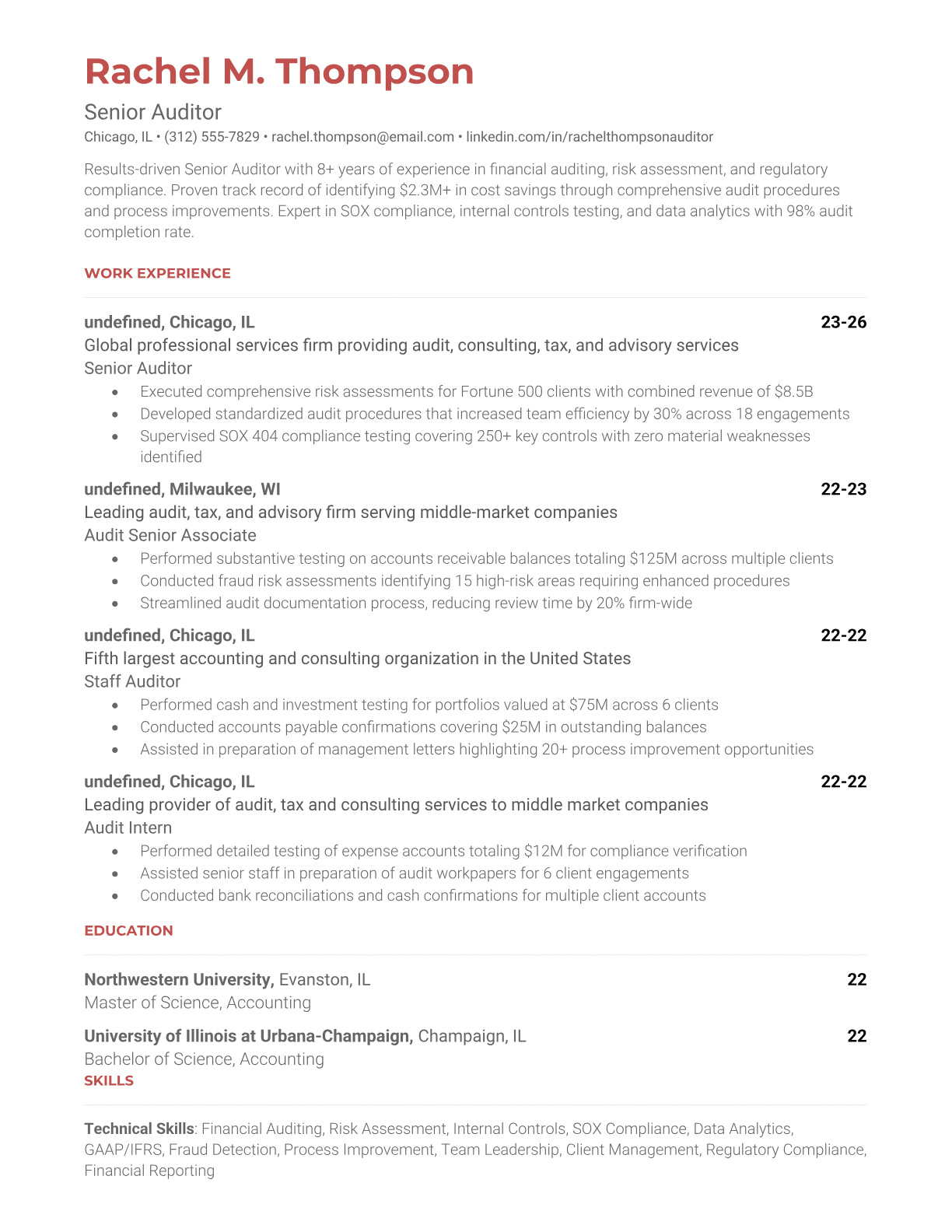 Senior Auditor Resume Templates - ATS-Optimized for Accounting Firms