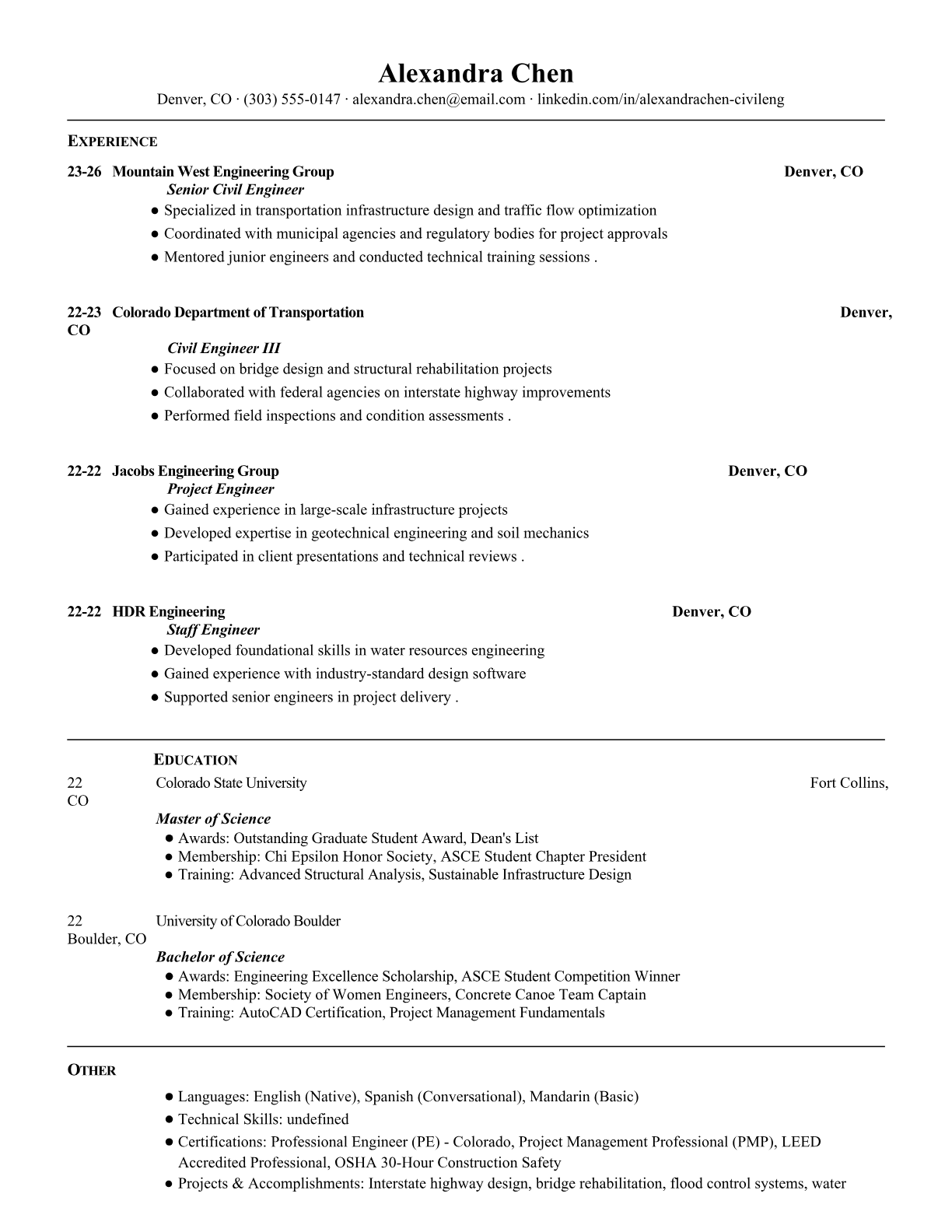 Senior Civil Engineer Resume Templates - ATS-Optimized