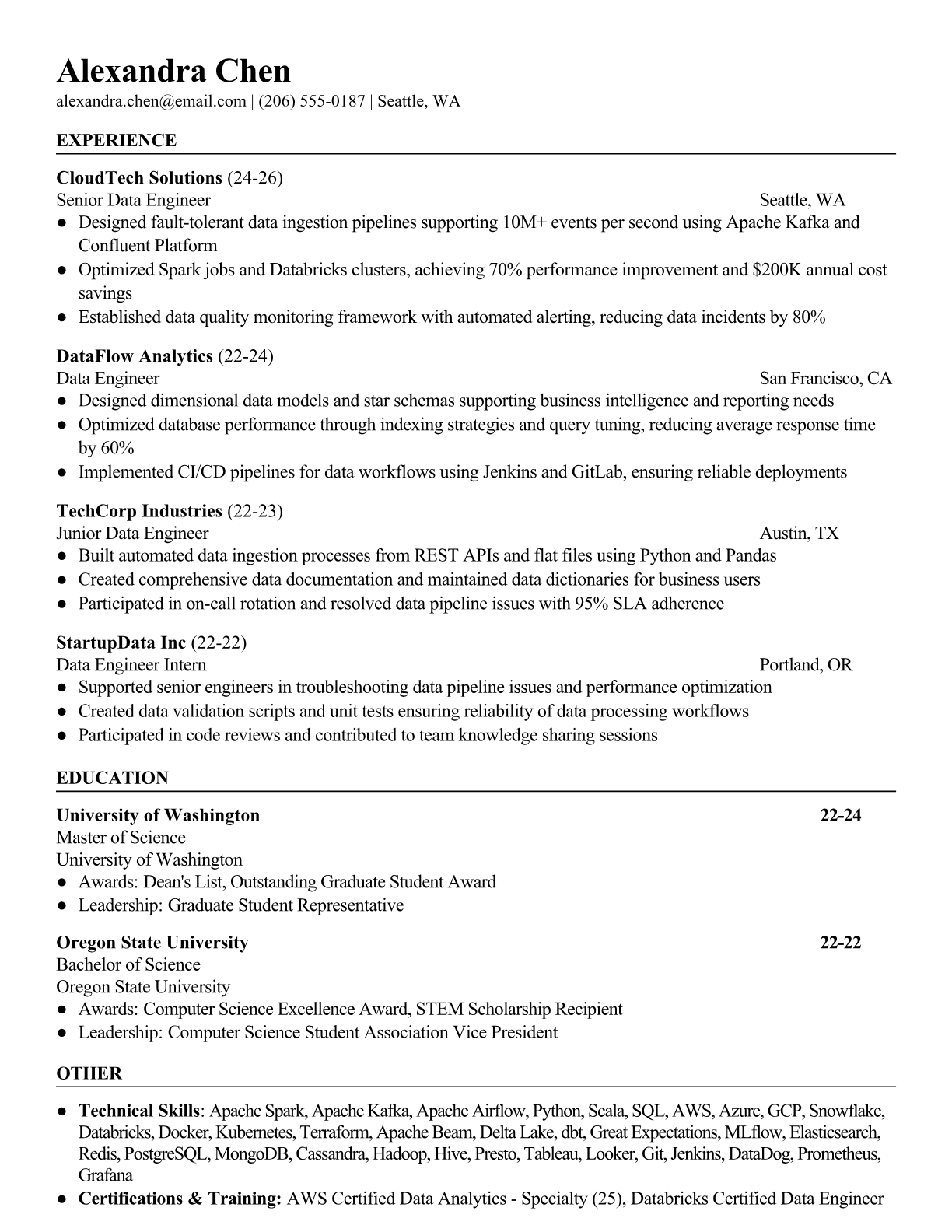 Senior Data Engineer Resume Templates - ATS-Optimized
