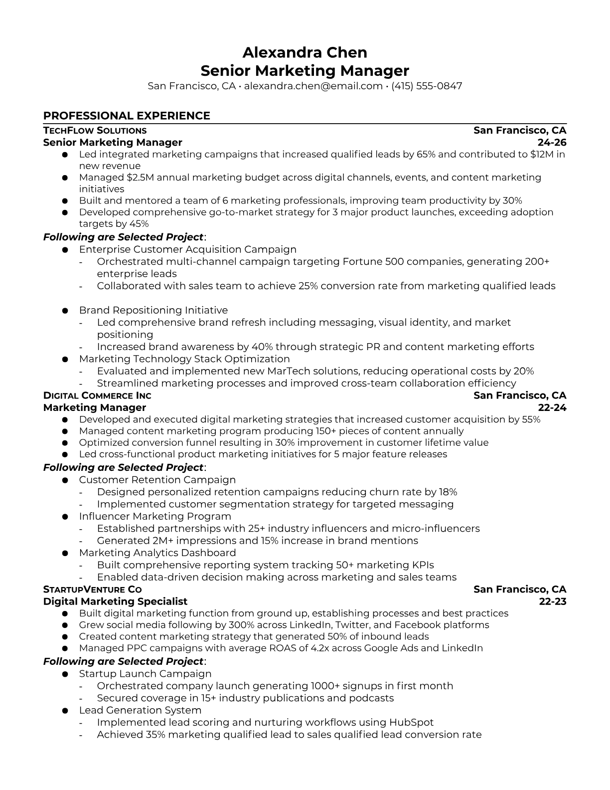 Senior Marketing Manager Resume Templates - ATS-Optimized