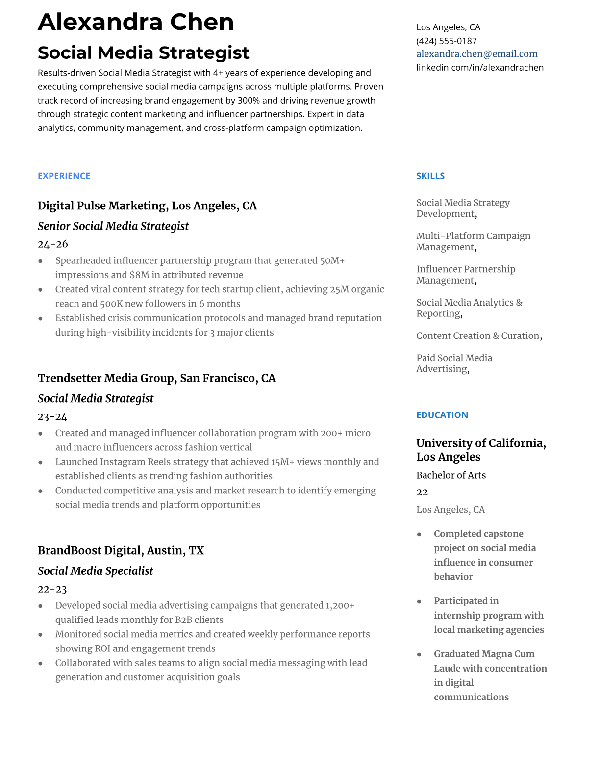 Social Media Strategist Resume Templates - ATS-Optimized