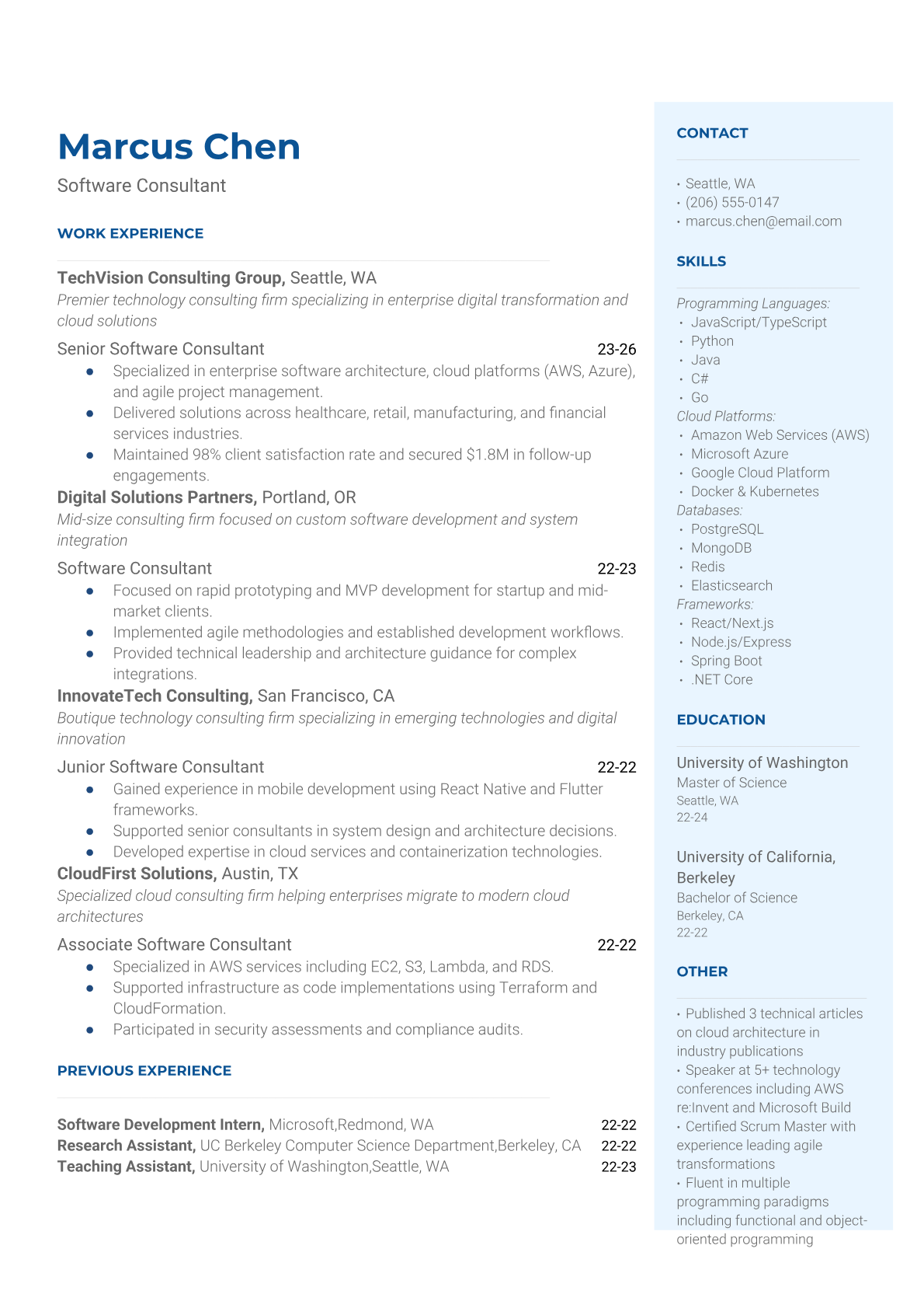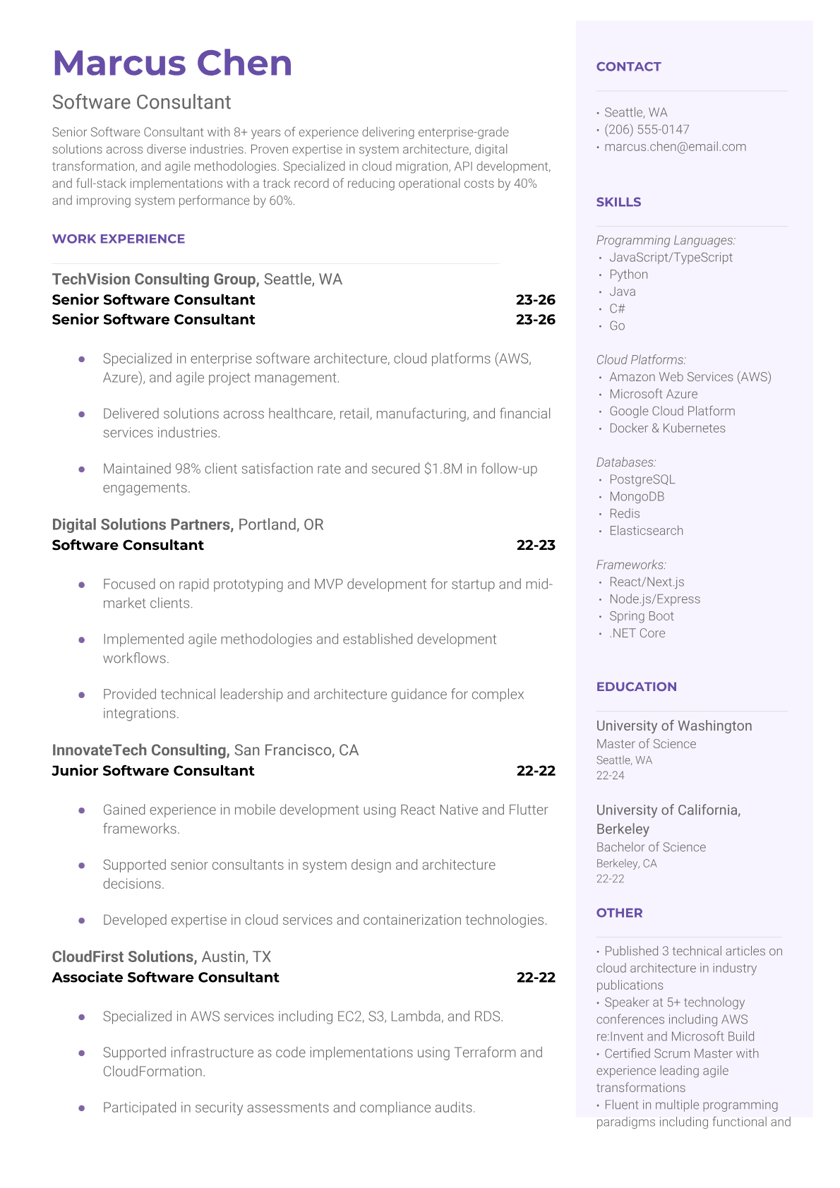 Software Consultant Resume Templates - ATS-Optimized for Consulting Roles