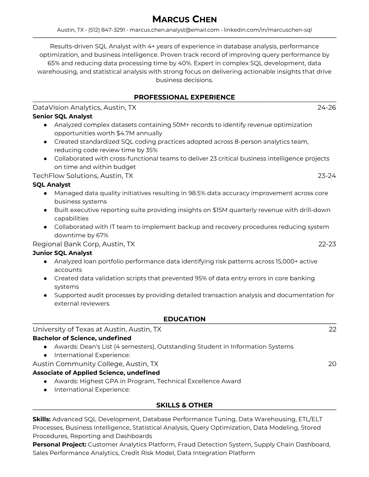 SQL Analyst Resume Templates , ATS-Optimized for Data Analytics Jobs