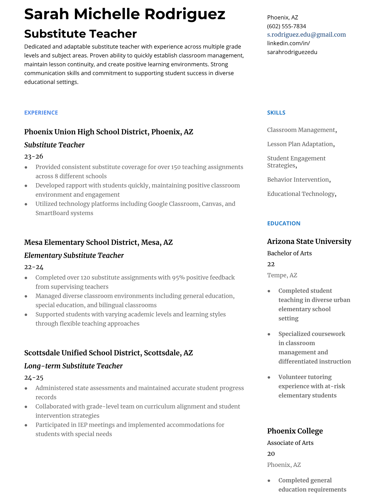 Substitute Teacher Resume Templates - ATS-Optimized for School Districts