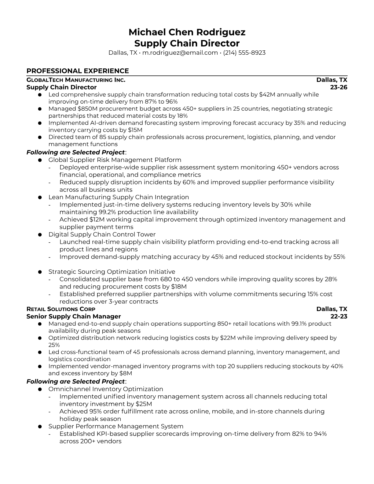 Supply Chain Director Resume Templates - Executive & Leadership Formats