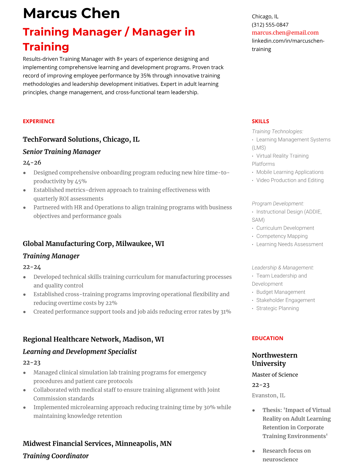 Professional Training Manager resume templates designed for corporate ATS systems. Highlight your instructional design, program management, and leadership experience with formats trusted by HR professionals.