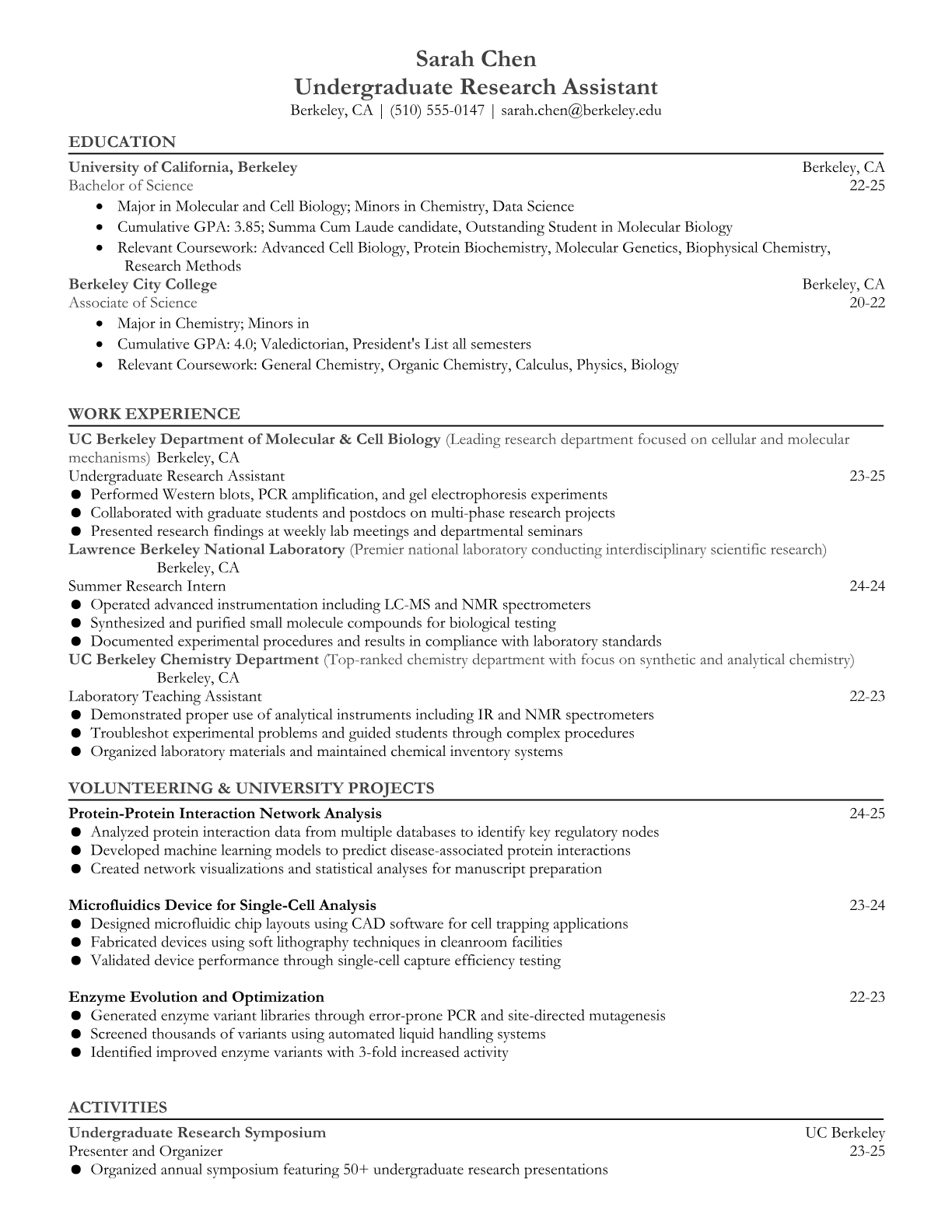 Undergraduate Research Assistant RESUME TEMPLATES