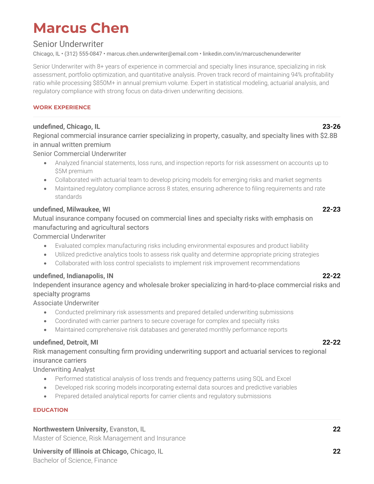 Professional Underwriter Resume Templates - ATS Optimized