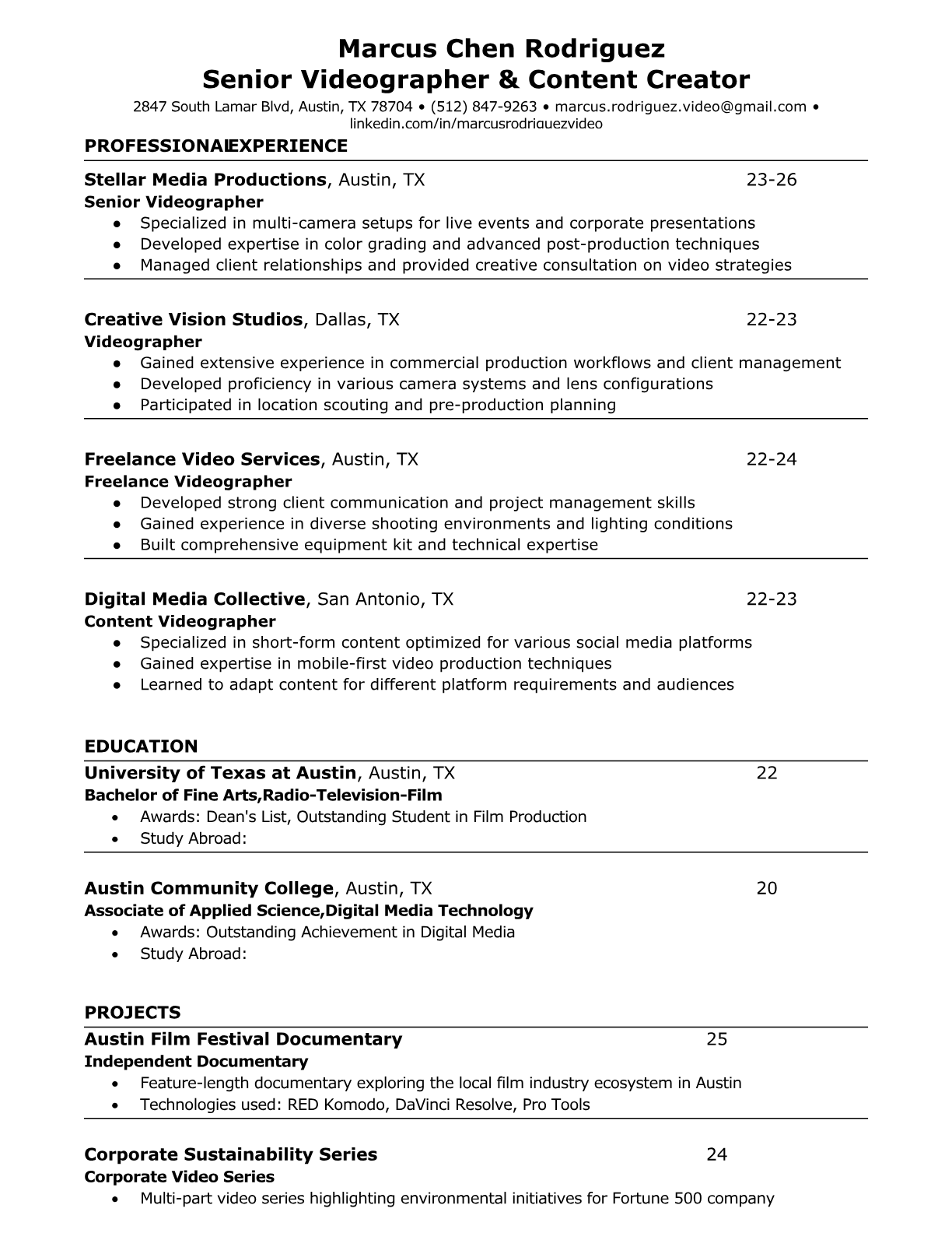 Professional Videographer Resume Templates - ATS Optimized