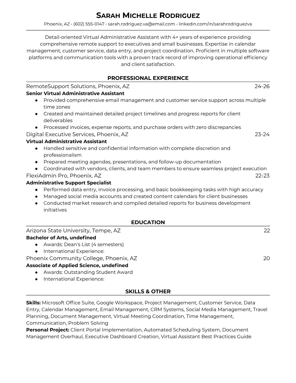 Virtual Administrative Assistant Resume Templates - ATS-Optimized