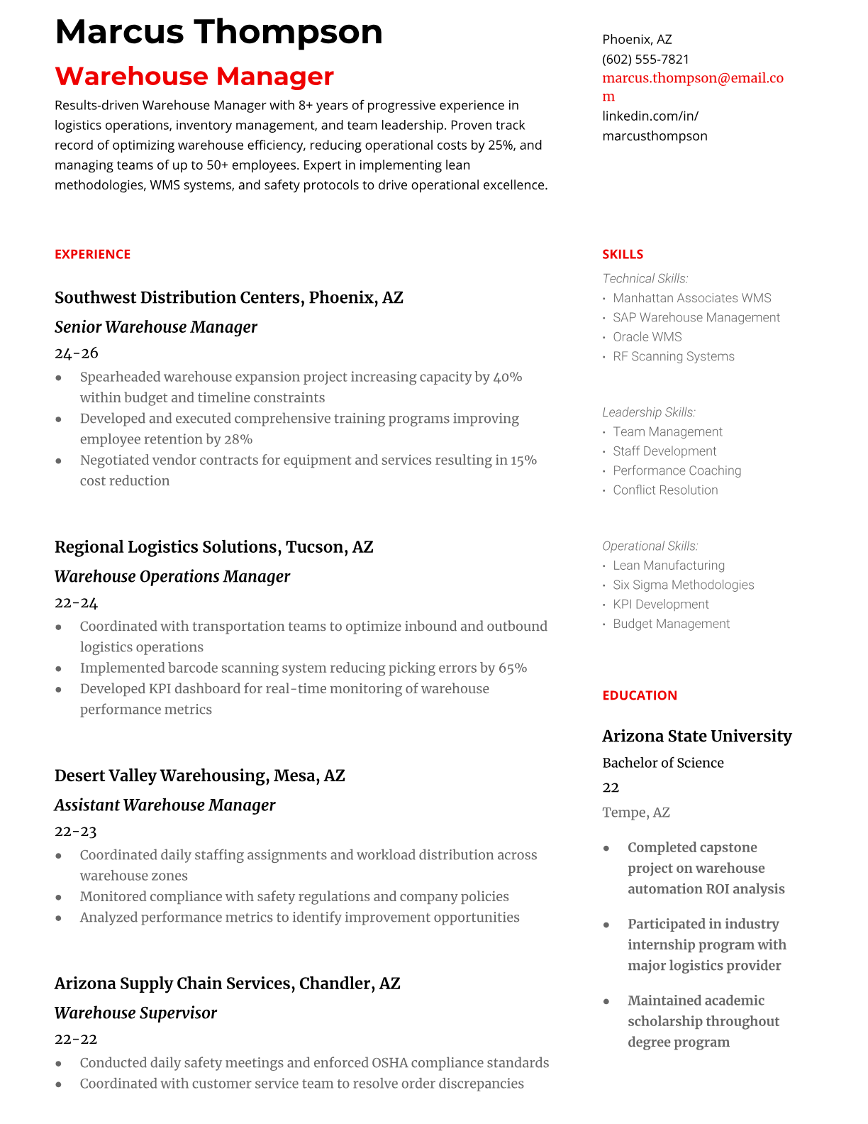 Warehouse Manager Resume Templates - ATS-Optimized for Logistics Jobs