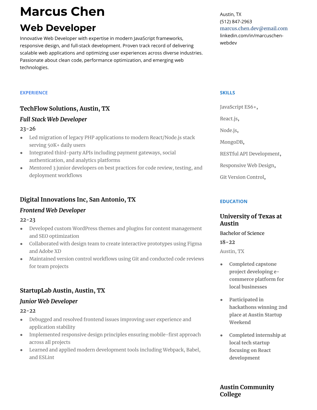 Web Developer Resume Templates - ATS-Optimized for Tech Jobs