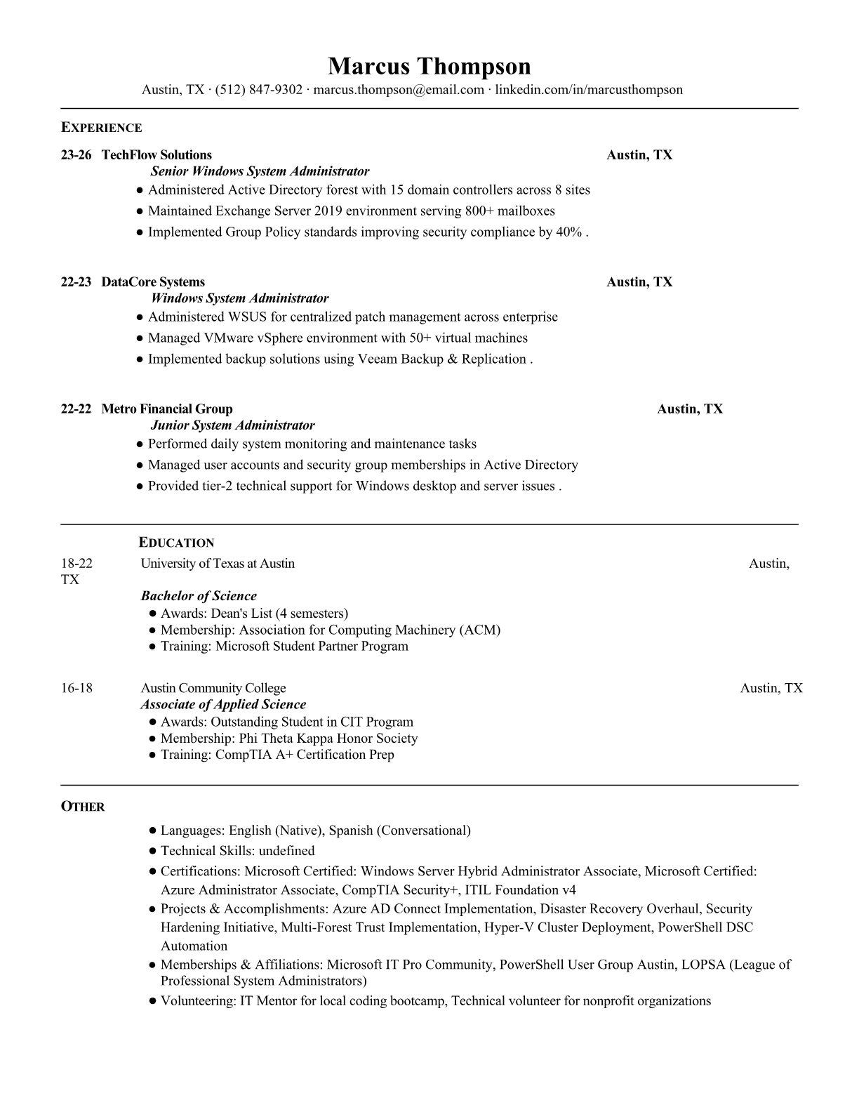 Windows System Administrator Resume Templates - ATS-Optimized